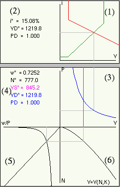 Als Beispiel ist ein einfaches makroökonomisches Modell keynesianischer Prägung gewählt worden, wie es bereits in den ersten Semestern eingeführt wird. Dabei konzentriert sich das Programm auf solche Effekte, die sich auf Grund von Änderungen der Parameter oder der Instrumentvariablen einstellen. Das Preisniveau als endogene Variable spielt eine gesonderte Rolle, um inflatorische Vorgänge auf dem Weg hin zu einem simultanen gesamtwirtschaftlichen Gleichgewicht besser darstellen zu können. Exemplarisch wird das Modell einer geschlossenen Volkswirtschaft mit staatlicher Aktivität um einzelne Aspekte ergänzt. Zum einen lässt sich eine offene Volkswirtschaft berücksichtigen, so dass Handelsbeziehungen abgebildet werden können. Hier werden die Ausgleichsmechanismen der Zahlungsbilanz eine besondere Rolle spielen. Zum anderen ist es möglich, Vorgänge des ökonomischen Wachstums darzustellen.