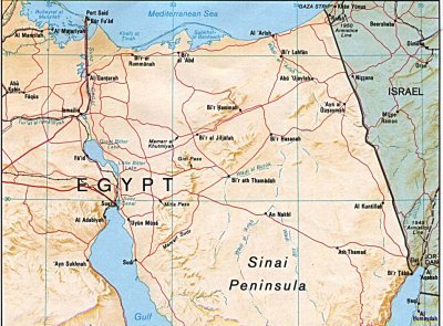 Gulf of Suez, an arm of the Red Sea. The canal provides a shortcut for